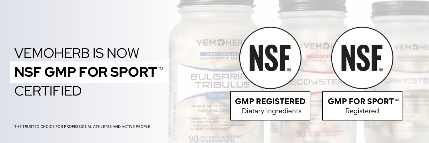 За VemoHerb получаването на NSF GMP for Sport™ е знак на нашата отдаденост към поддържането на най-високите стандарти за качество. Този сертификат дава увереност на спортистите, състезаващи се на най-високото ниво, че добавките на VemoHerb са безопасни, ефективни и напълно съответстват на изискванията за антидопингов контрол.