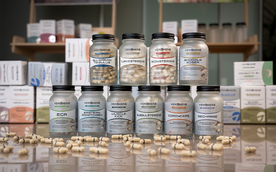 VemoHerb® ist eine Marke für hochkonzentrierte Nahrungsergänzungsmittel zur Steigerung der sportlichen Leistung und zur Unterstützung der Gesundheit. VemoHerb-Produkte basieren auf Kräuterextrakten oder -mischungen mit maximaler Konzentration und Reinheit der bioaktiven Wirkstoffe.