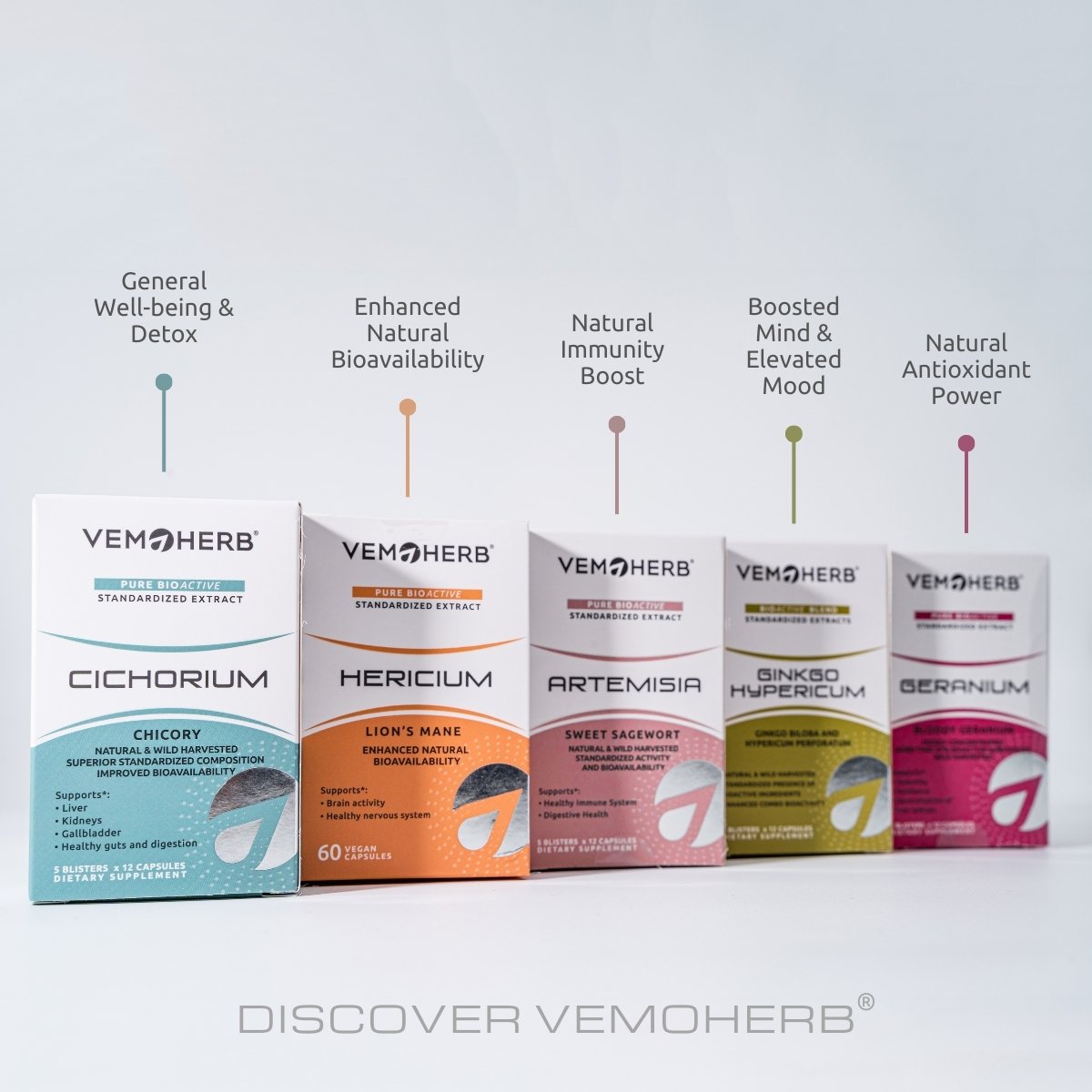 All of the above in combination with the coumarin derivatives form the biologically-active complex of VemoHerb® Cichorium that influences positively the gall-kidney and liver functions.* Also, VemoHerb® Cichorium influences positively the glutathione levels and support the organism in maintaining the blood vessels’ walls strong and flexible.* [10]