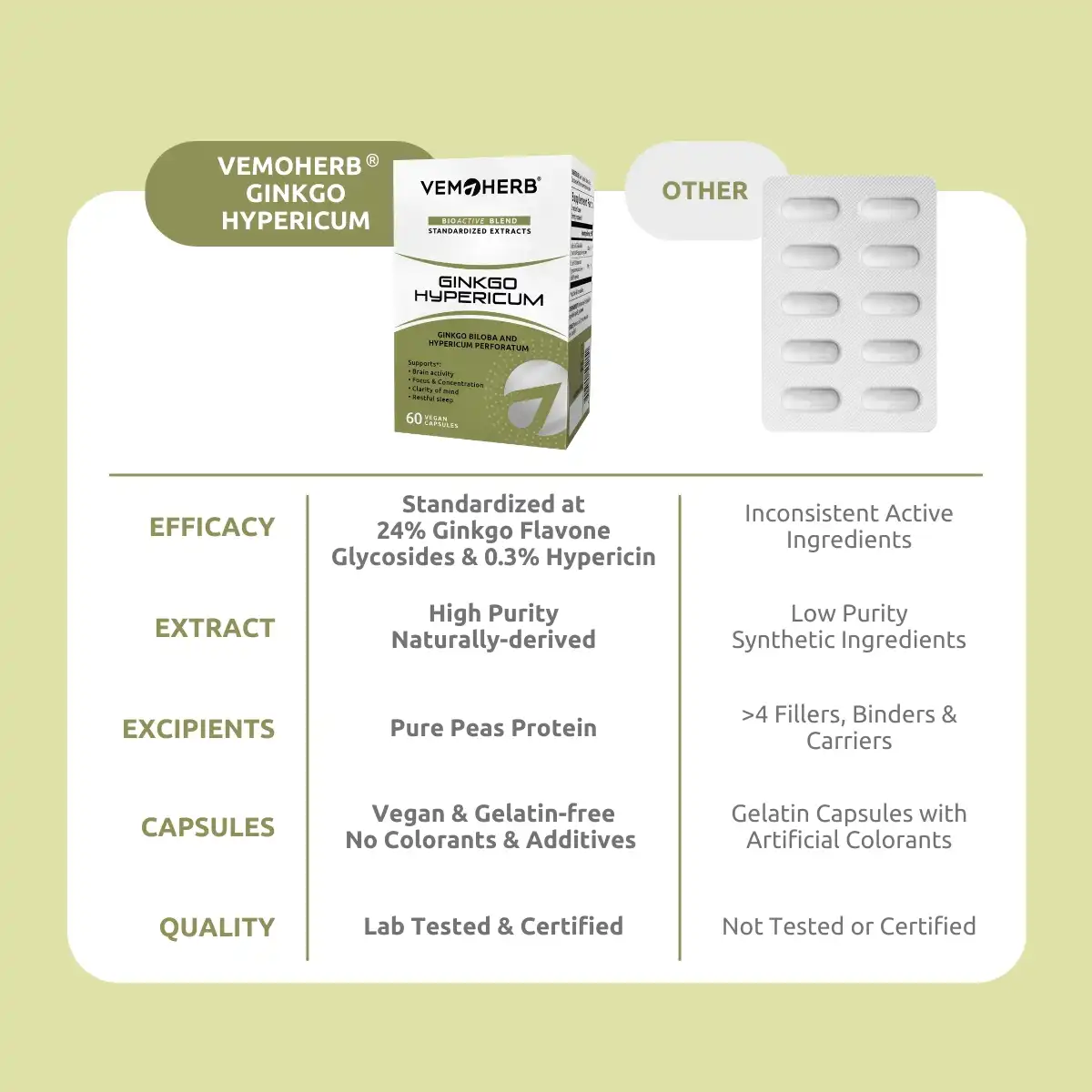 Ginkgo Hypericum (Ginkgo biloba and St. John’s Wort), 60 capsules I VemoHerb®