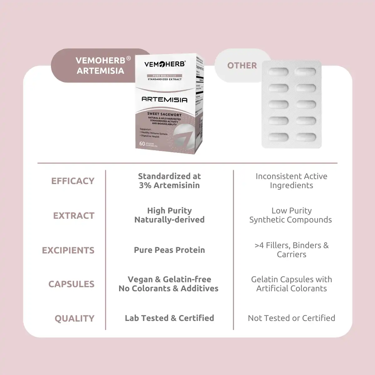 VemoHerb® supplements are made with standardized extracts for maximum potency and purity. Each product is lab-tested to ensure 100% natural, vegan ingredients with NO additives or banned substances.