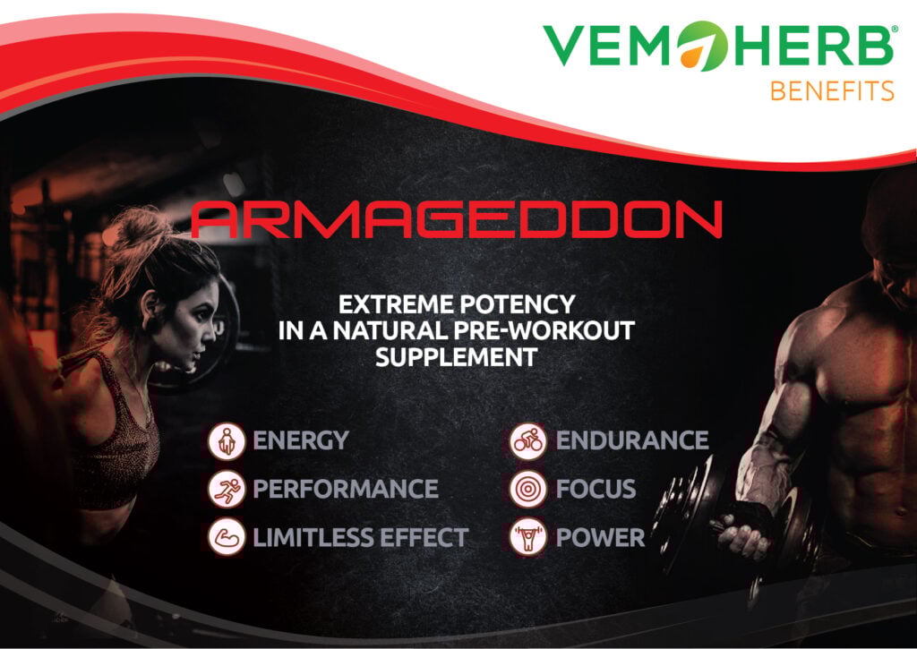 If you are a fan of challenges and want to do the impossible, then choose VemoHerb® Armageddon. The powerful combination unlocks your maximum potential of energy, will and strength to exceed the limits of what is possible.* You can already improve your own records and outdo yourself. More series, more achievements! This product combines with itself all the beneficial effects of nutritional supplements, supporting not only the power of the body but also its health.*