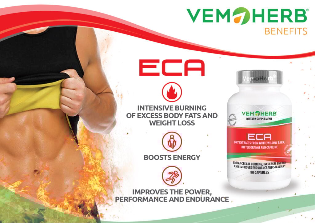 For quality fat burning and weight loss, choose VemoHerb Eка that is a natural alternative of the combination Ephedrine, Caffeine, Acylpirine. It is a triple mixture of Caffeine anhydrous, dry extract from Citrus aurantium and dry extract from White Willow bark. It supports the process of fat burning in a natural way rising body temperature and increase energy and endurance of the organism. *